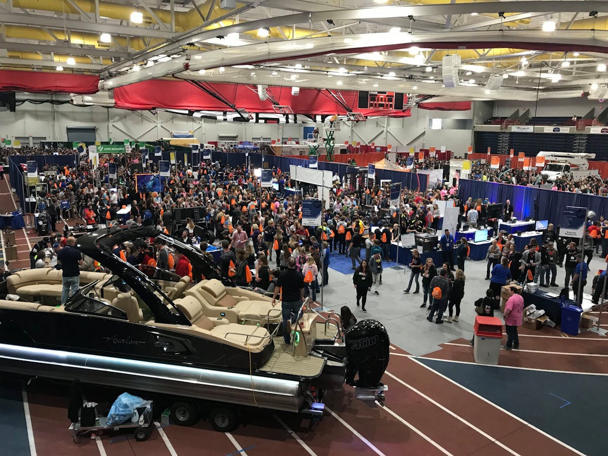 We have about 70 exhibitors from five different sectors: advanced manufacturing, agribusiness, health sciences, IT, and construction. In total, there around 700 exhibitors and volunteers coordinating the event, helping guide the students during the 90 minutes allotted for each school. Last year, we had about 5,000 students attend in a single day.